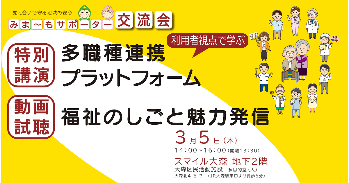 令和7年度大田区地域力応援基金助成事業の集大成として、「大田区福祉のしごと魅力発信」をテーマとして動画を作成しました。その視聴の場を3月5日に設けました。